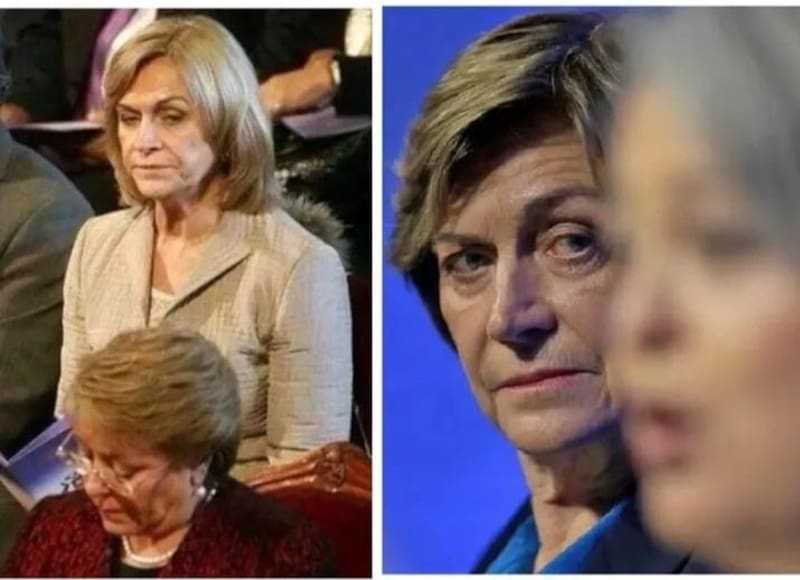 “Ese principio se aplica a este meme, que yuxtapone dos escenas para crear un espejo histórico en torno a Evelyn Matthei. En una aparece frente a Michelle Bachelet, la candidata que la derrotó en 2013; en la otra, adopta el mismo gesto ante Jeannette Jara, exministra de Bachelet y primera candidata presidencial comunista respaldada por todo el progresismo”, dice Molina.