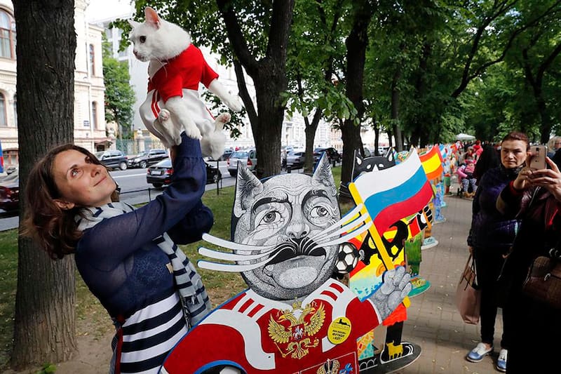 Un minino sordo fue el animal encargado de los pronósticos de Rusia 2018. Al elegir entre dos platos de comida, el gato Aquiles mostraba al mundo su vaticinio, teniendo entre sus aciertos la victoria de Rusia sobre Arabia Saudita.