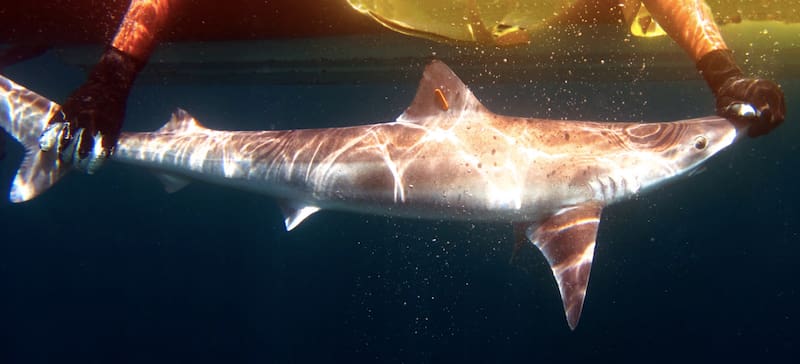 Ellos contaron que estaban pescando en la costa frente a Caleta Olivia y allí consiguieron cazar tres pozones, conocidos como mini tiburones. La especie puede llegar a medir hasta 2 metros, pero en el caso de los ejemplares capturados, su extensión alcanzaba los 1,5 metros.