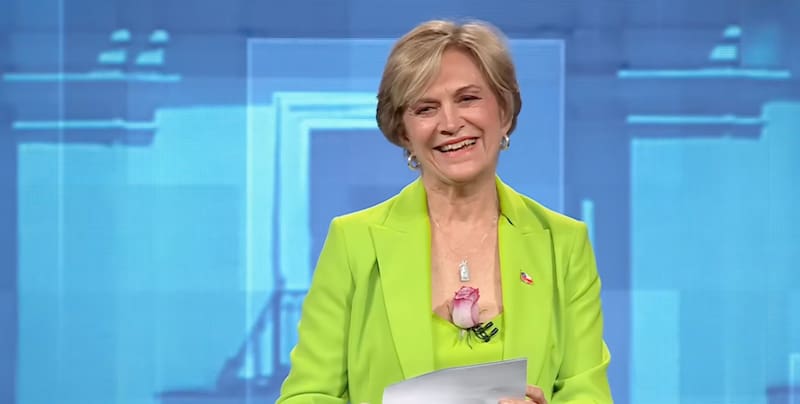 Matthei, quien cumple 71 años este 11 de noviembre, tomó la palabra y comenzó su intervención con la rosa regalada en el escote. “La puse cerca de mi corazón”, comentó tras el debate a los medios de comunicación.