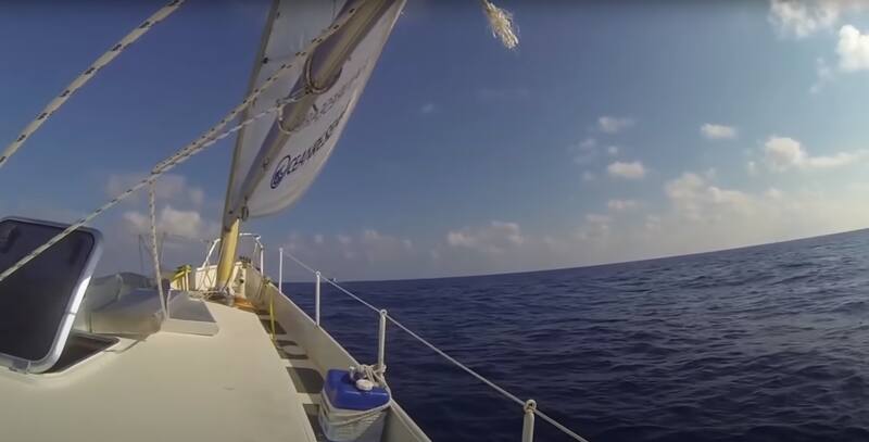 Luego de pasar 47 días en el mar, la pareja comenzó a quedarse sin combustible, por lo que convenció a un carguero que pasaba para que se detuviera y les diera un poco de gasolina.