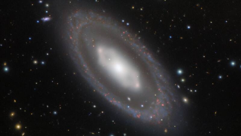 La galaxia lenticular barrada NGC 7020, que se encuentra en la constelación austral del Pavo, encierra un misterio geométrico.
