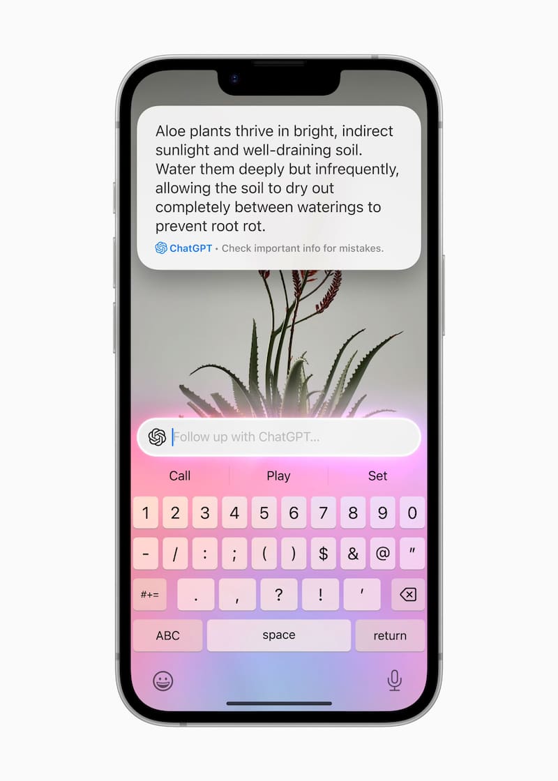 Una de las novedades es que ChatGPT está perfectamente integrado en las Herramientas de Escritura y Siri, de manera que los usuarios pueden elegir acceder a todo su conocimiento sin necesidad de pasar de una app a la otra, y así completar tareas de forma más rápida.