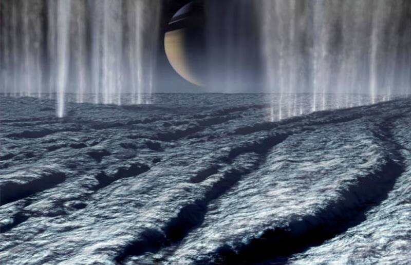 El océano alienígena es parecido a un “océano de soda”, pues es carbonatado, burbujeante y salado. Está oculto bajo una capa de hielo de varios kilómetros de espesor, pero tiene grietas por donde salen partículas congeladas hacia el espacio.