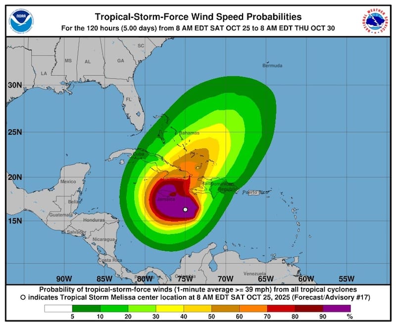 Melissa es el tercer huracán de categoría 5 de la actual temporada en el Atlántico, igualando uno de los años más activos registrados.