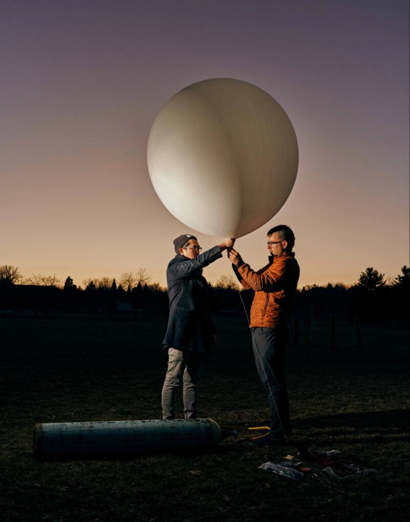 Los representantes de la empresa van a zonas montañosas y alejadas en una casa rodante, en la que llevan globos meteorológicos de gran tamaño y tanques que contienen dióxido de azufre y helio.