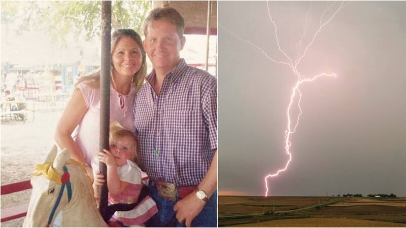 Un rayo cayó justo en la parte superior de su cabeza, mientras tenía a su pequeña en brazos y su esposa estaba al lado de él.