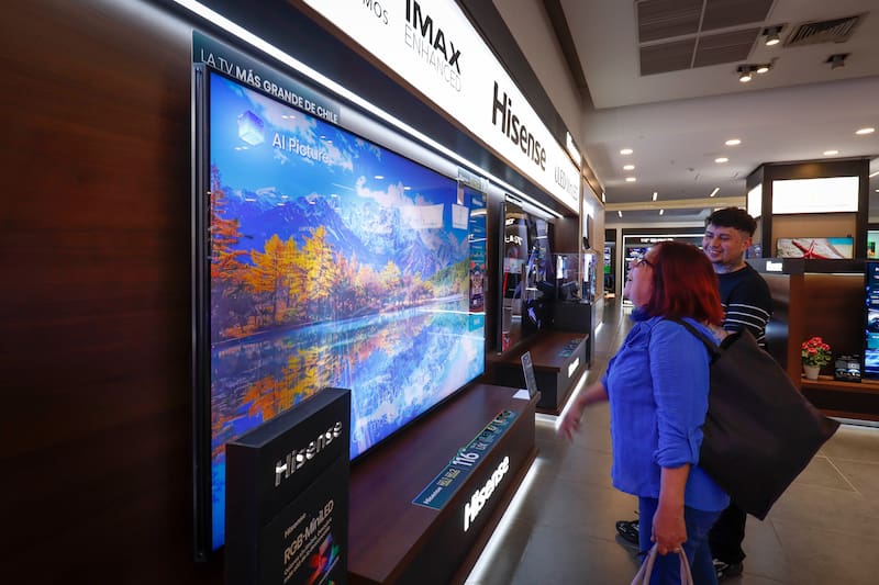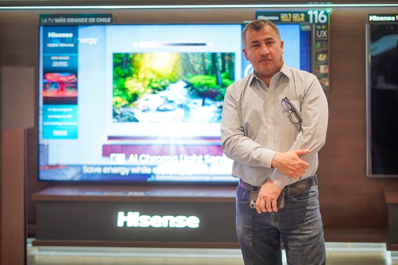 “Este televisor es efectivamente el más grande de Chile”, dice a La Tercera Carlos Falcón, director de marketing de Hisense Chile en el último piso de la tienda Ripley en el mall Cenco Costanera.