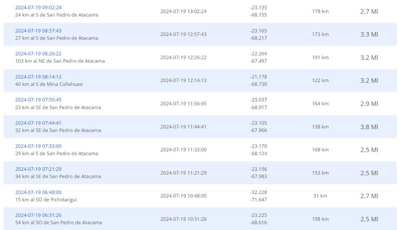 Eran las 21:50 del pasado 18 de julio, cuando un fuerte movimiento sacudió a gran parte del norte de Chile. Se trató de un sismo de 7.3 escala Richter, cuyo epicentro fue situado a 20 kilómetros al sur de San Pedro de Atacama, en la región de Antofagasta. La profundidad fue de 166 kilómetros, según los datos del Centro Sismológico Nacional.