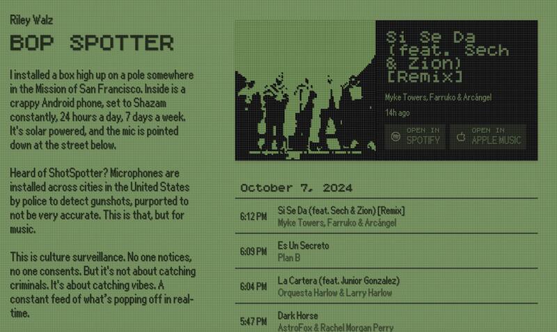 “Bop Spotter es como una cápsula del tiempo viviente que muestra en tiempo real qué canciones se están reproduciendo”, ha asegurado el joven a la prensa estadounidense.