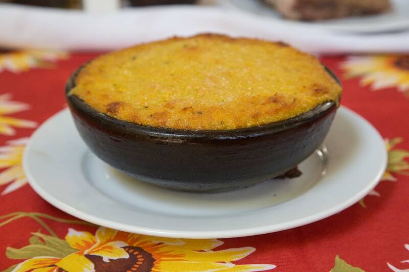 “Se compone de carne molida de res, pollo, aceitunas negras, cebolla, huevos duros y una masa de harina de maíz llamada choclo”, indica.