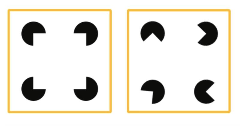Precisamente, una de las figuras exhibidas estaba compuesta por cuatro elementos parecidos a un Pac-Man que estaban alineados hacia el centro de la imagen, entregando la sensación al espectador de que al medio había un cuadrado ilusorio.