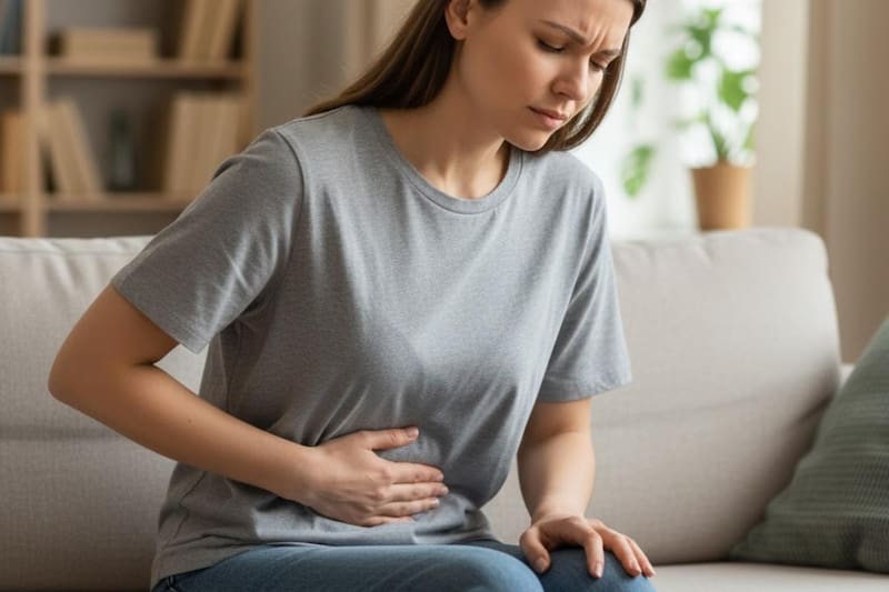 - Molestias continuas en la zona abdominal, como calambres, gases o dolor.