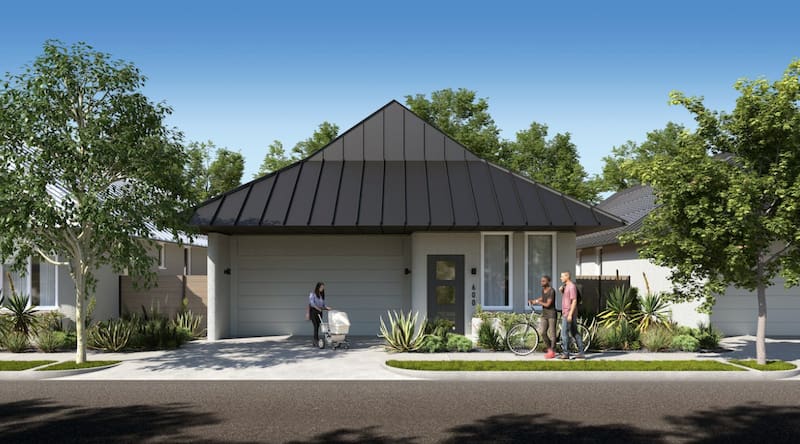 Según indica ICON en su sitio web, los techos de metal “son duraderos, energéticamente eficientes, resistentes al fuego y duran más que los techos tradicionales” y están equipados con paneles solares fotovoltaicos. Mientras tanto, las paredes son resistentes al agua, moho, termitas, fuego y condiciones climáticas que puedan ser complejas.