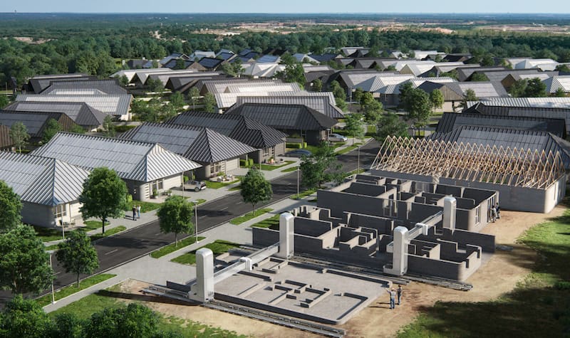 El sistema robótico está a punto de terminar las últimas 100 viviendas impresas en 3D en Wolf Ranch, una comunidad situada en Georgetown, estado de Texas. Se trata del barrio más grande de ese tipo que se ha construido en el mundo.