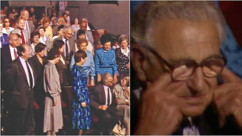“¿Hay alguien en esta sala que le deba su vida a Nicholas Winton?”, preguntó la conductora, mientras varios adultos se pusieron de pie, como se puede ver en el siguiente registro: