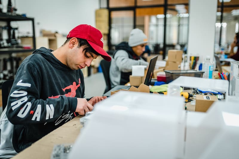 Henry, de 22 años, estaba nervioso “como primer día de pega”, dice y ríe. Recuerda una reunión “con los jefes”, donde le explicaron que estaban desarrollando un prototipo de ventilador mecánico para la pandemia y protectores faciales para resguardar al personal médico del coronavirus. Henry escuchó eso y, por primera vez, se sintió parte de algo importante.