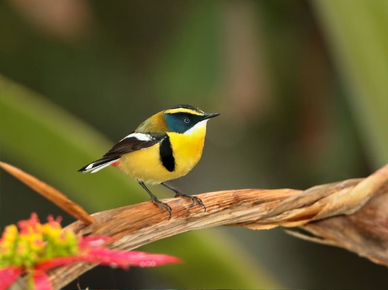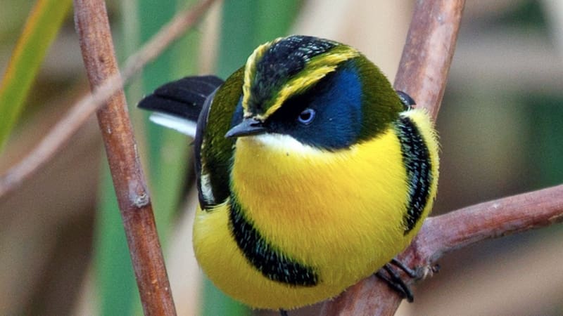 Al igual que se ha retratado con Fiu, el sietecolores es un ave de tonalidades muy intensas y atractivas: amarillo, verde, blanco, negro, azul y un poco de rojo son algunos de los matices que adornan su plumaje. Son precisamente esas tonalidades lo que le dan origen a su nombre.