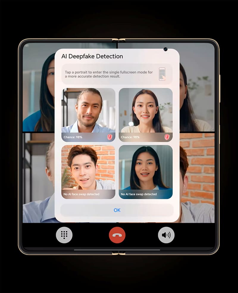 A favor (IA útil): incluye detección de deepfakes en videollamadas. Según Time, el Magic V5 escanea señales como movimientos faciales antinaturales en apps como WhatsApp o Messenger, procesando todo en el dispositivo para mayor privacidad.