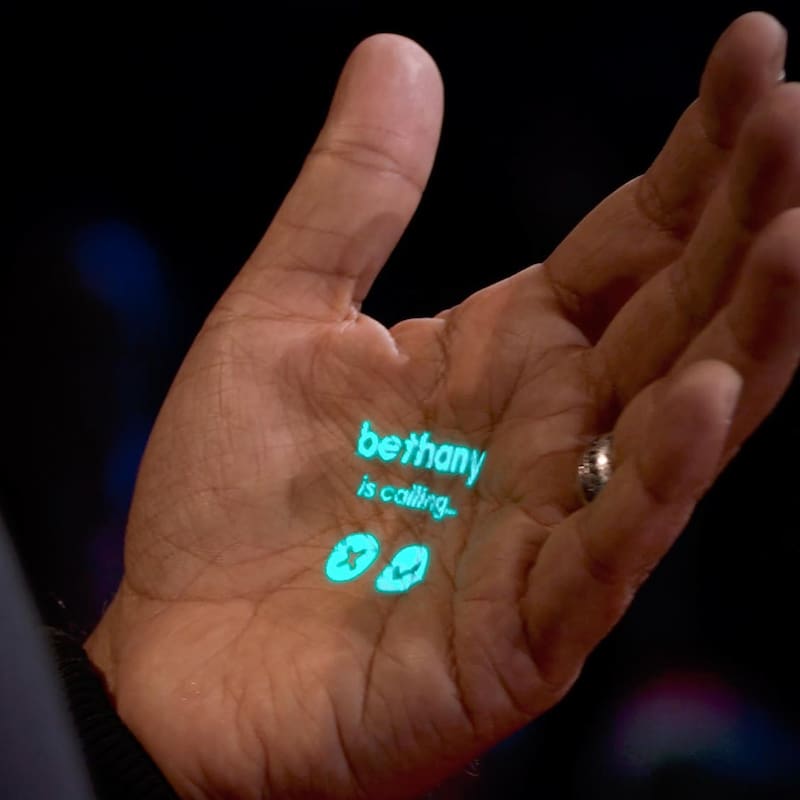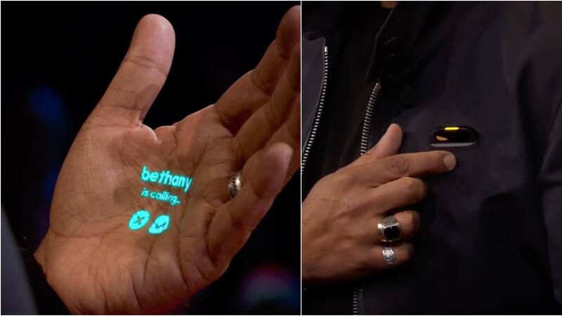 En dicha instancia, los creadores Imran Chaudhri y Bethany Bongiorno hicieron una llamada de audio frente a los asistentes, quienes vieron como el primero revisaba los detalles de la comunicación en su mano, a través de los gráficos que proyectaba el aparato colgado en su chaqueta.