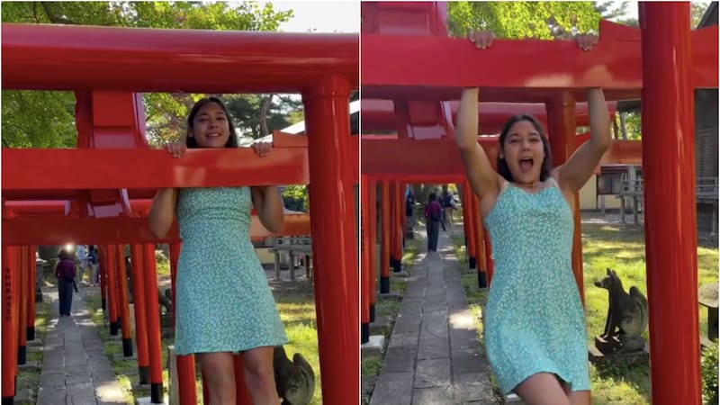Indignación por viral de chilena que hizo dominadas en una puerta torii en Japón
