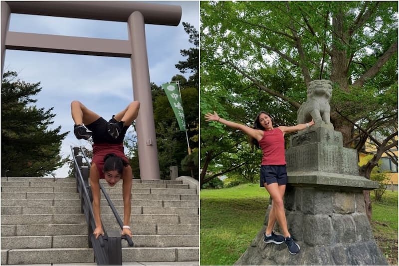 Sin embargo, esa no fue la única ocasión en que se grabó haciendo piruetas en un arco sagrado. En otro registro se le ve haciendo un ejercicio denominado handstand en las escaleras que conducen a un torii de Nakajima Park, parque urbano ubicado en la ciudad de Sapporo. “Tuve que hacerlo por la foto”, escribió en esa publicación.