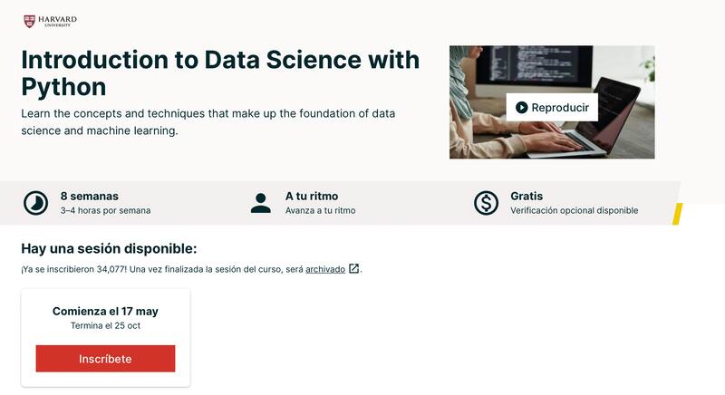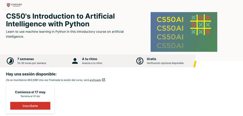 Otro se presenta como “Introducción a la inteligencia artificial con Python” y consiste en el uso de la IA para desarrollar modelos de programación con dicho tipo de lenguaje, el cual puede ser útil para motores de juegos, traducción automática y reconocimiento de escritura a mano.