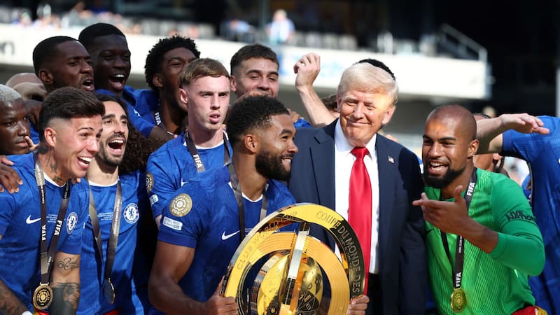 La permanencia de Trump en el escenario derivó en que figurara en las imágenes del Chelsea levantando la copa del Mundial de Clubes.