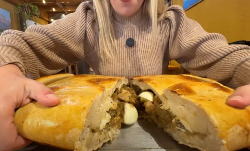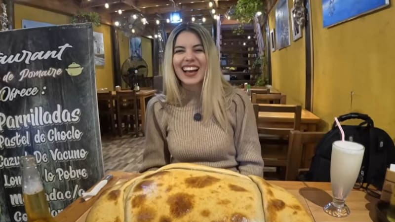 Una cubana probó la empanada de pino más grande de Chile en Pomaire: pesa 7 kilos y cuesta $45.000. Su experiencia se viralizó en YouTube.