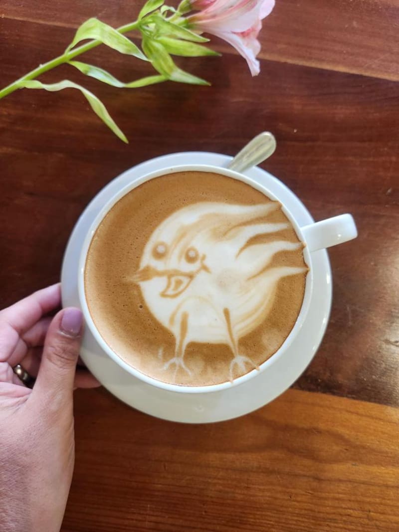 “Llegó una clienta frecuente y me dijo ‘Roberto te tengo un reto, dibujemos a Fiu en el café’. Y acepté”, recuerda. Rápidamente buscó en su celular una foto para guiarse un poco. “Hice el café y lo detallé. Salió a la primera”.