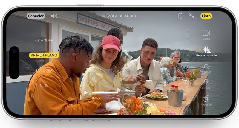 Hay tres modos: primer plano, estudio y cine, que harán variar la escucha de la escena. Todo esto gracias a los micrófonos de “calidad estudio” del equipo, que captan y luego se procesan con la inteligencia artificial nativa.