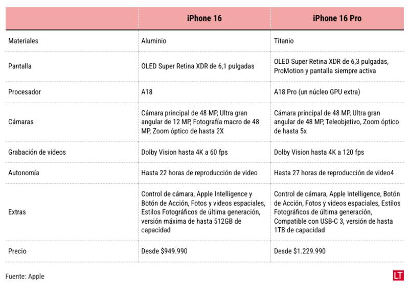 Volviendo a hablar de ambos modelos del iPhone 16, hagámonos cargo de sus diferencias y qué mejor que con un cuadro comparativo –lo más simple posible– que te sacará de dudas a la hora de elegir entre uno y otro.