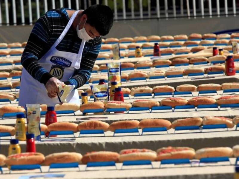 No obstante, en cuanto se comenzó a viralizar cómo se estaba construyendo el completo más largo del mundo, los usuarios de redes sociales se apresuraron a cuestionar el logro: no se trataba de una sola vienesa larga, o un pan gigante.