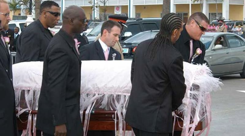 En la ceremonia que organizó Anna Nicole, ella vistió el mismo velo que usó el día del matrimonio. Llegaron casi 30 personas, pero prácticamente ninguna de ellas había tenido la oportunidad de conocer o hablar con J. Howard Marshall. El funeral que organizó la familia, mientras tanto, fue multitudinario. Pero Anna Nicole no estaba incluida entre los invitados.