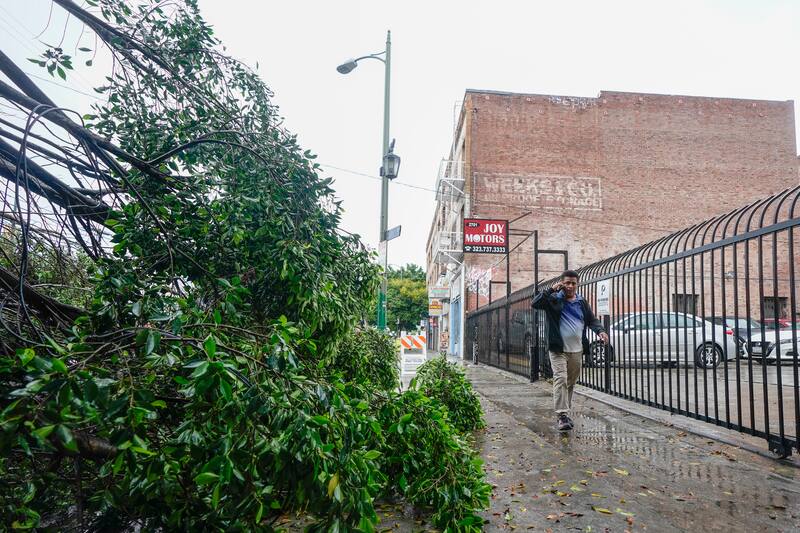 “Estoy viendo muchos más árboles caídos. Y hay un gran árbol que acaba de caer por allí, y probablemente yo no debería estar aquí fuera”.