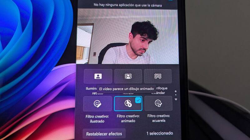 - Efectos en la cámara con Windows Studio Effects: hay mejores en la nitidez y luminosidad, conseguidas con la IA, que dan además diferentes efectos y filtros.