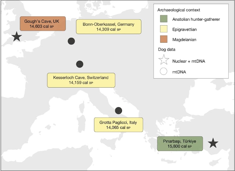 En total, los científicos identificaron evidencia de perros en cinco sitios distintos, lo que constituye la primera prueba genética concluyente de que estos animales ya existían durante el Paleolítico.
