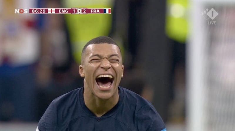 Al mismo tiempo, el francés Kylian Mbappé no se guardó su alegría y festejó frente al grosero error del inglés.
