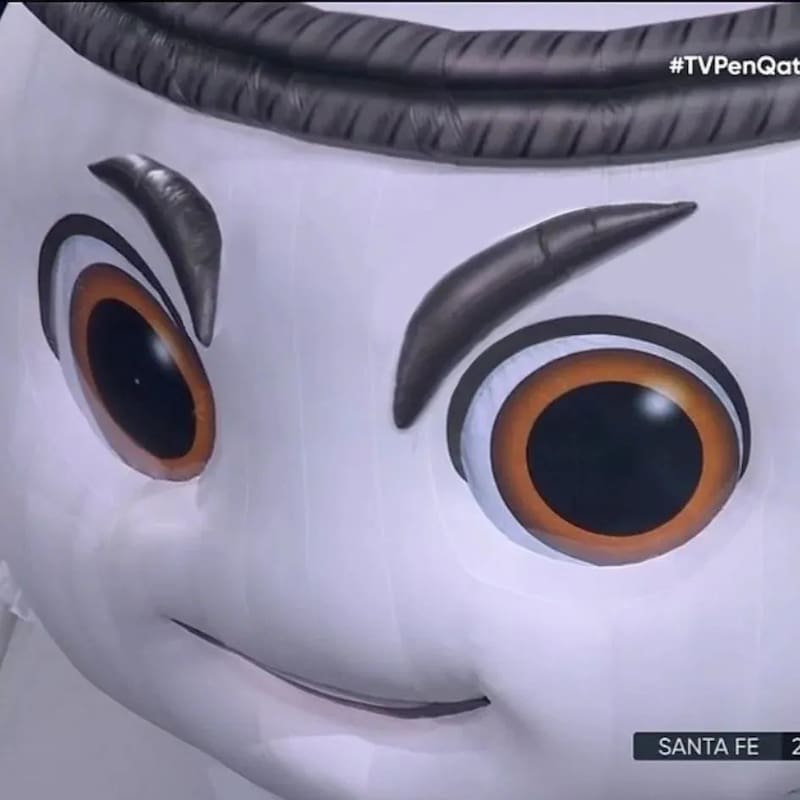 Este personaje que parece un fantasma, es en realidad un turbante animado y su nombre traducido al español podría interpretarse como “jugador habilidoso”. Pero a pesar de que La’eeb luce una sonrisa en su rostro durante la mayor parte del tiempo, también hay un sticker de WhatsApp en el que se le puede ver con el ceño fruncido, lo que algunos han interpretado como que cualquier país que se meta con Qatar, sufrirá consecuencias directas.