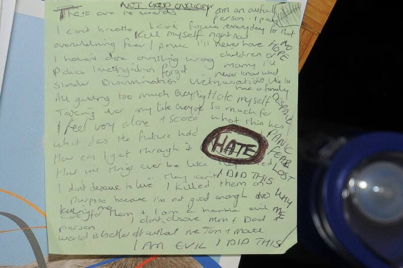 “Los maté a propósito, porque no soy lo bastante buena para cuidar de ellos”, se leía con tinta negra en uno de ellos. “SOY MALVADA, YO HICE ESTO”, era otro de los mensajes.