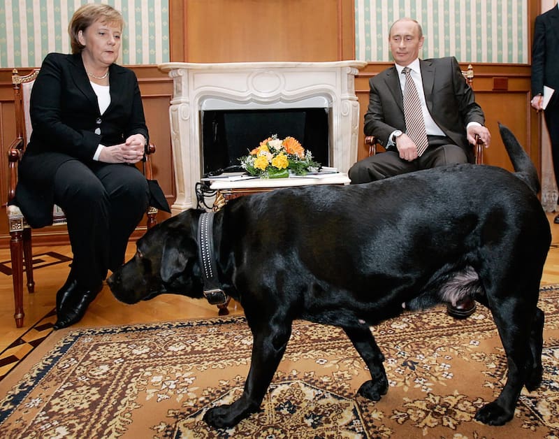 Durante su reunión diplomática, Putin trató de intimidarla llevando a su perro, Koni, un labrador negro de gran tamaño.