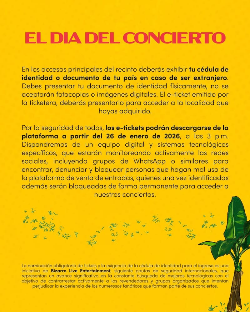 También hicieron un llamado a no comprar en reventa. Desde la producción del espectáculo anunciaron que las entradas serán nominativas e intransferibles.