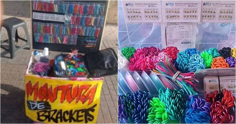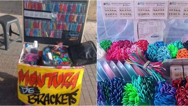 Las imágenes se hicieron virales en redes sociales hace apenas unos días. En ellas, se ve un puesto ambulante ubicado en Estación Central, junto a un cartel con la frase “montura de brackets” y numerosas piezas de colores a la vista de los transeúntes.