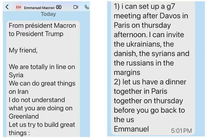 Donald Trump difundió los mensajes privados que recibió de Emmanuel Macron y el secretario general de la OTAN, Mark Rutte, en medio de las tensiones diplomáticas por Groenlandia.