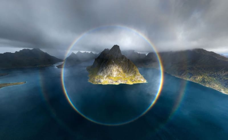 “Si estás en la superficie de la Tierra, normalmente es imposible ver la verdadera forma óptica de un arcoíris: un círculo completo, porque solo hay gotas esféricas de agua en la atmósfera sobre la superficie de la Tierra, no debajo”, explicó el científico.