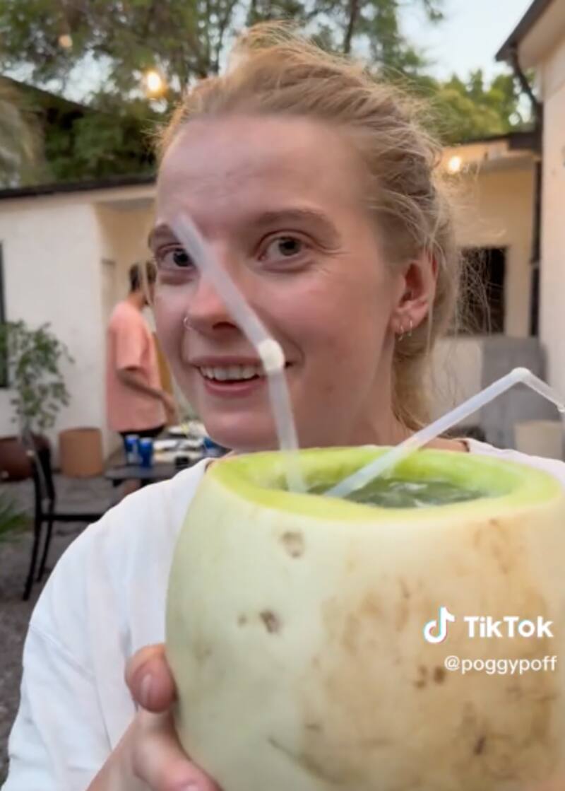 En el video, la primera que prueba el denominado “melvin” es Sofie. En su mano sujeta el bebestible, el que lleva dos bombillas. “Es un típico trago de Chile, nunca lo he probado antes”, dice.