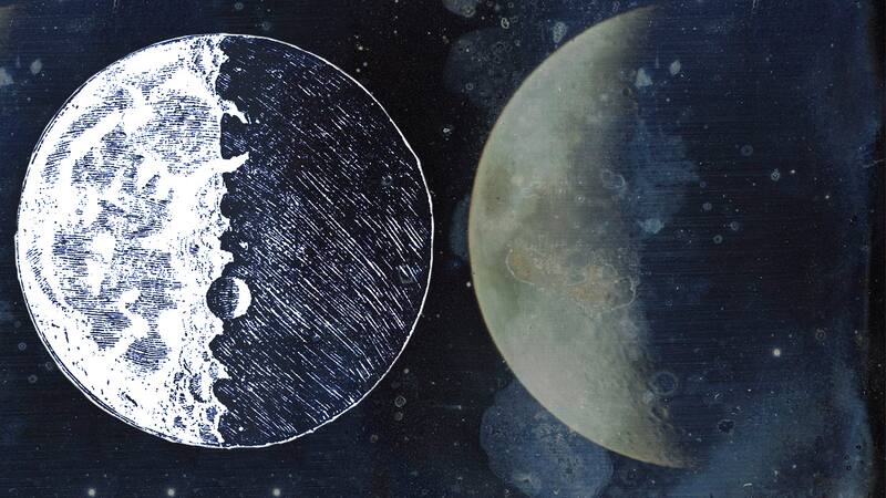 En 1609, Galileo Galilei mira por primera vez la Luna a través de un telescopio, dejándonos dibujos como aquel que acompaña este texto. En 1851, John Adams Whipple captura la otra imagen que se ve más a la derecha, un daguerrotipo –forma primitiva de fotografía– de la Luna. ¿Cuál de las dos imágenes es más real? Por supuesto, para la mayoría será la fotografía. Allí, como en algunos concursos académicos, el fotógrafo se limita a enfocar, a disponer sus placas fotosensibles, a direccionar sus lentes. Luego abre el obturador y la suerte está echada. Aunque sea más borrosa, aunque su color y contraste no sean precisos, es una imagen que nos da confianza. La de Galileo, en cambio, pasó por una conciencia humana, colmada de sospechosas subjetividades, deseos y propósitos. Sin embargo, quizás sea la imagen más importante de la Luna jamás impresa, porque en ella Galileo subraya el aspecto de la Luna que llamó su atención: la existencia de valles y de montañas. La Luna, con esa imagen, sale del territorio aristotélico de las esferas perfectas y se instala en el universo de lo ordinario y alcanzable. El cielo y la tierra finalmente se unifican.