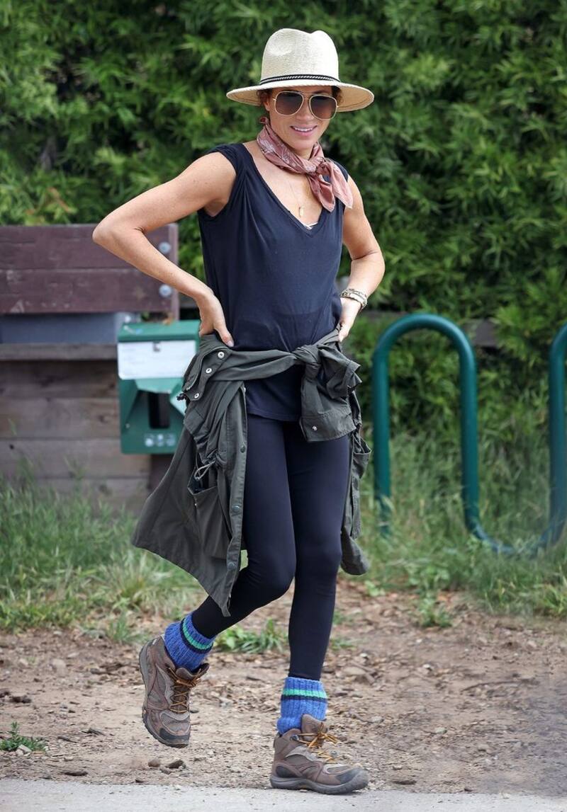 Las imágenes tomadas en California —estado en el que reside con el príncipe Harry— la muestran con botas outdoor, un pañuelo atado al cuello, un sombrero blanco y lentes de sol.