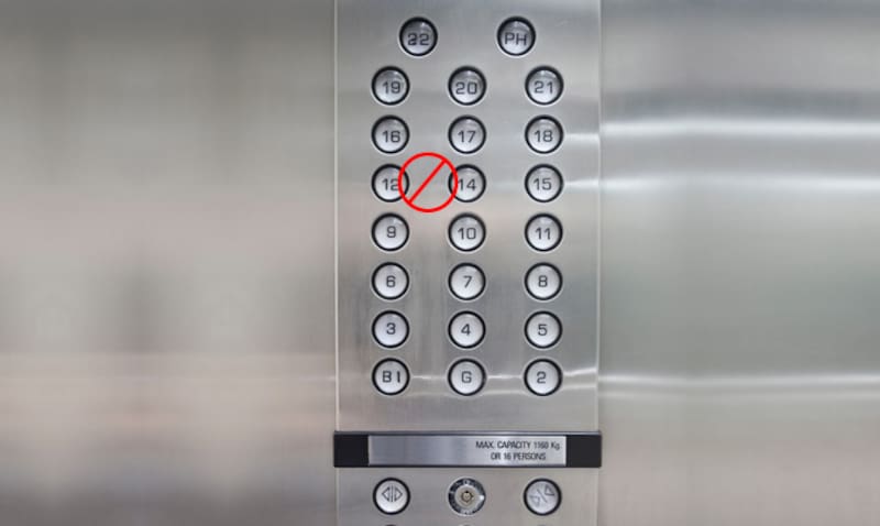 A pesar de aquello, los estadounidenses tienden a irse a la segura al momento de evitar el número a toda costa. Un sondeo de Gallup reveló que, paradójicamente, un 13% dijo sentirse molesto al recibir una habitación en el piso 13 de un hotel, mientras que la empresa de ascensores Otis Elevator Co. detalló que de siete edificios, seis de ellos se saltan el 13 en su numeración, para así pasar directamente desde el 12 al 14.
