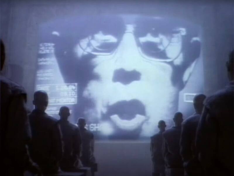 La figura del “Gran Hermano” era presentada como este hombre que se dirigía a los individuos inexpresivos desde la pantalla gigante, mientras que los agentes que perseguían a la mujer eran una representación de la llamada “policía del pensamiento”.